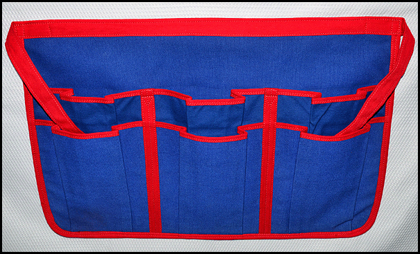 #6 - Six pocket apron with two rows of three pockets one behind the other. This is also a very popular apron amongst arcades and operations that need multiple pockets. The stock apron is approximately 22 inches wide by 14 inches high. The front pockets are approximately 9 inches high and back pockets 11 inches high. As in all my aprons, this can be changed to meet your needs.
