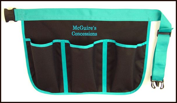 To try and explain all the variables of this would require MANY pages. Please contact us by telephone and we will present you with options and help you work within your budget to get the job done. Below are just a few aprons with some personaliztion just to give you an idea and reference point.